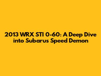 Hey car enthusiasts! Ever wondered about the raw power and exhilarating performance of the 2013 Subaru Impreza WRX STI? Well, buckle up because we're about to dive headfirst into the world of this iconic speed machine, focusing specifically on its legendary 0-60 mph acceleration. Get ready to explore the heart-pounding numbers, the engineering marvels, and the driving experience that made the 2013 WRX STI a legend on both the road and the track. This isn't just a car; it's a statement, a testament to Subaru's commitment to performance, and a symbol of driving passion. So, let's get into the nitty-gritty and discover what makes this car a true icon. The 2013 Subaru Impreza WRX STI is more than just a car; it's a driving experience that ignites the senses. From the moment you grip the steering wheel, you feel a connection to the road that few cars can match. Its distinctive growl, the surge of power, and the precision handling combine to create an exhilarating package. This car isn't just built to get you from point A to point B; it's designed to make every drive an adventure, a chance to feel the adrenaline pump, and to experience the thrill of the open road. With its distinctive design and high-performance capabilities, the 2013 WRX STI remains a favorite among driving enthusiasts. The 0-60 mph time is more than just a statistic; it's a testament to the car's power, agility, and the engineering that went into creating this automotive marvel. So, if you're ready to explore the exciting world of the 2013 WRX STI, keep reading as we uncover the secrets of its performance and explore why it's a true legend in the automotive world.