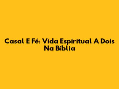 Casal E Fé: Vida Espiritual A Dois Na Bíblia