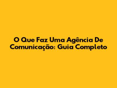 O Que Faz Uma Agência De Comunicação: Guia Completo