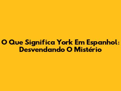 O Que Significa York Em Espanhol: Desvendando O Mistério