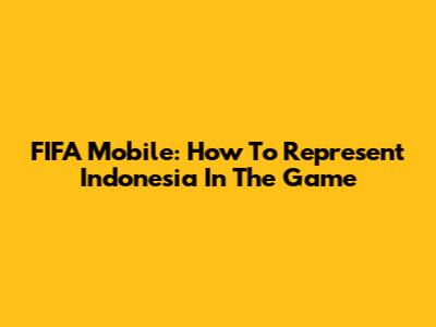 FIFA Mobile: How To Represent Indonesia In The Game
