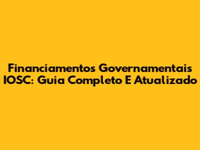 Financiamentos Governamentais IOSC: Guia Completo E Atualizado