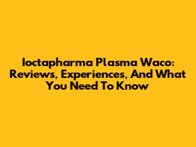 Ioctapharma Plasma Waco: Reviews, Experiences, And What You Need To Know