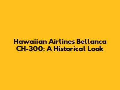 Hawaiian Airlines' Bellanca CH-300: A Historical Look