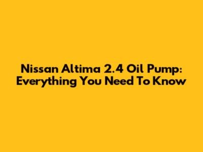 Nissan Altima 2.4 Oil Pump: Everything You Need To Know